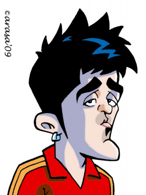El admirado Andrés Iniesta tiene una caricatura muy divertida. Así es, como esta pintada con acuarela y lápiz de color dentro de la sección de futbolistas famosos.