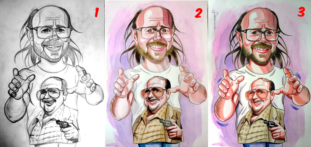 Caricatura a acuarela de Santiago Segura como Torrente, proceso de creación