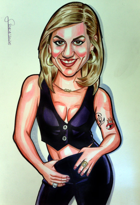 Caricatura a acuarela de Henar Álvarez con contorno a rotulador negro.